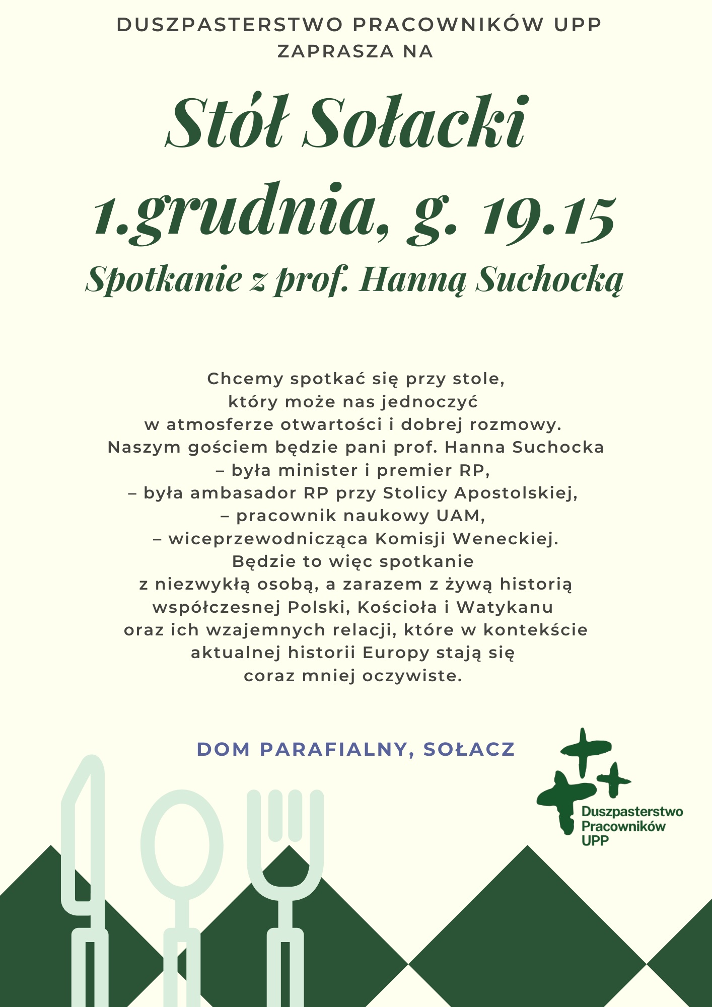 Duszpasterstwo Pracowników UPP serdecznie zaprasza na "Stół Sołacki" 1 grudnia br. o godzinie 19.15.